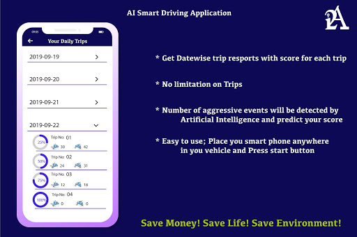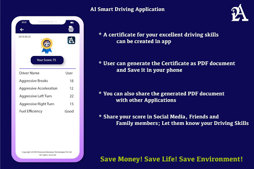 Your driving data will be given to a specialized Artificial Intelligence program to calculate your driving score, which makes us unique in the market right now! The AI Program is completely tested with multiple level of evolution and built with experts in the professionals. Join Us to make beautiful safety world to have safe driving on roads! Don’t forget you’re also saving fuel at enormous rate!! By saving fuel, together we can build a safe environment with reduced Carbon emission!!