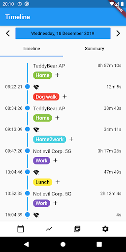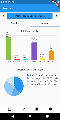 Automatically track how much time you spend at work, home, your favorite places or on commute. And visualize the data using colorful charts.