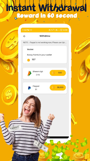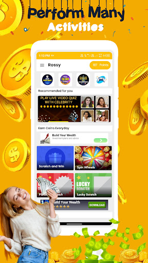 Get reward amount and earning in paytm/UPI/Bank account and instant cash in paytm wallet Complete task Scratch and spins and get points instant reward in wallet.Refer Rossy Daily Reward Earning App earn more reward money. Get free UC, Diamonds, earn money, FF redeem code, credits and gift card. Each task a large amount of paytm cash reward.