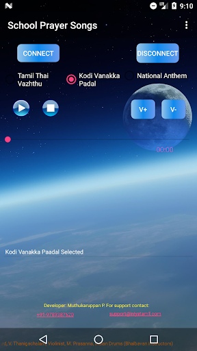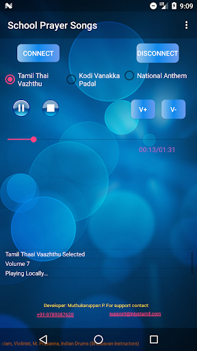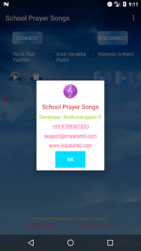 A music player for School Prayer Songs which includes Tamil Thaai Vaazhthu, Kodi Vanakka Paadal and National Anthem. This application can play the both in offline mode and desktop mode. To play songs in desktop download desktop application from