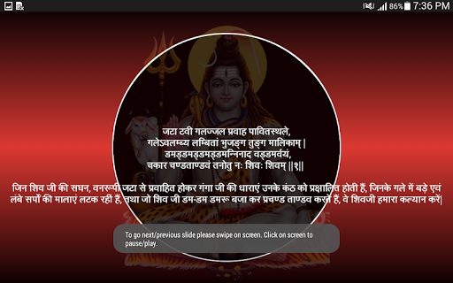 • Shiv Tandav Stotram can play/pause by clicking on screen and also go backward or forward by swapping on screen.