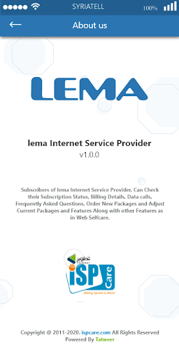 Subscribers of Lema Internet Service Provider, can check their subscription status, billing details, data-calls, Frequently asked questions, order new packages and adjust current packages and features