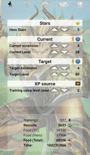 This app calculates some interesting parts of Empires and Puzzles to help you better understand where to invest your resources in, and plan your progress. The main features that are currently available are: