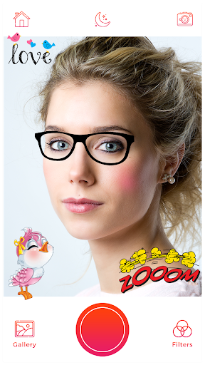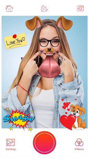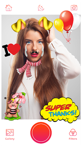 Selfie Camera - Filter & Sticker & Photo Editor offers real-time face swaps & motion stickers Faces, Masks, and Motion Stickers with snappy themes can be downloaded and added to your pic using beauty cam