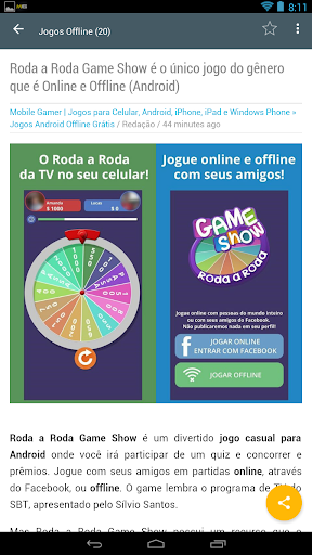 [ATENÇÃO] O aplicativo Jogos Offline precisa de internet para carregar o conteúdo pela primeira vez. Mas depois, é possível acessar todos os textos e imagens de forma offline.
