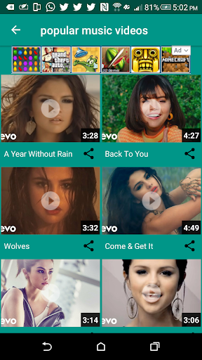 Selena Gomez Music Application features Selena Gomez's Music Videos, Stage performances, and her incredible Fashion Style.