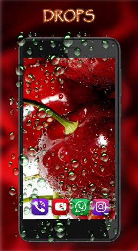 The application Berry Juicy 2016 contains an interactive effect of water droplets on the glass. Drops of water on the phone's glass are scattered in a random order. At the touch of a drop, the dew changes the trajectory of motion.