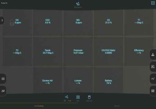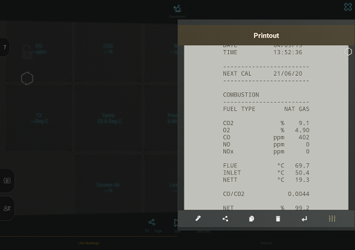 KANE Live - (FGA remote) allows you to view live readings from your KANE Flue Gas Analyser in ‘real time’. You can then share data as a CSV file via email, messaging services, cloud etc