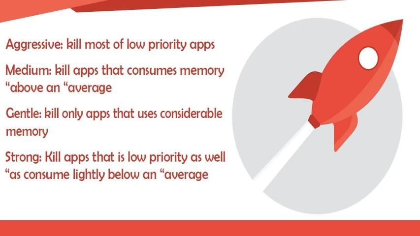 RAM Booster comes with auto-boost in 4 levels: aggressive, strong, medium, gentle.