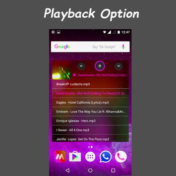 Home screen widgets - Favorites and playlists. Custom Playlist - Play any artist, album, or playlist on shuffle mode - Play any song, any time on any device--mobile, tablet, or your computer – High quality. Play, pause, stop, replay - Plays songs from folders and from own library - Dynamic queue - Lyrics support, including lyrics search via plugin - Embed and standalone .cue files support - Download missing album art - Custom visual themes, lot of skins available on play screen.