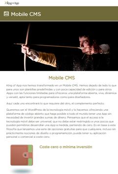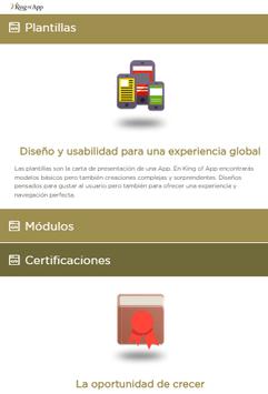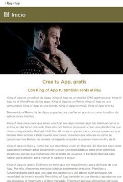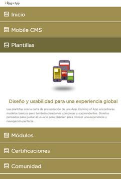 King of App es el primer CMS open source del mercado. Una plataforma de creación de Apps para dispositivos móviles en la que todos los usuarios, diseñadores y programadores, tienen opción de contribuir. Es una propuesta pensada para abastecer a un mercado en continuo crecimiento y que requiere de herramientas ágiles, dinámicas y sólidas. La opción de crear un CMS es la respuesta más clara a un entorno inflacionado, de difícil acceso para la mayoría y que corre un serio riesgo de quedar saturado por un exceso de demanda.