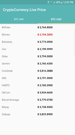 Cryptocurrency Live Price is an android application showing useful live data for Bitcoin directly from various Indian and global markets.