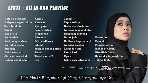 निम्नलिखित एक सूची है लोकप्रिय गीत Lesti (प्लेलिस्ट) जो इस एप्लिकेशन में निहित है, और हम हमेशा नवीनतम गीतों के साथ अपडेट करेंगे: