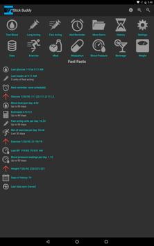 Stick Buddy makes it easy to manage your blood glucose and insulin injections and track a number of activities related to your health such as blood pressure, exercise, medication and meals. With unique features including finger stick and injection site management, adjustable heads up information options and true cross device data synchronization, Stick Buddy helps you take control of managing your diabetes and tracking your health.