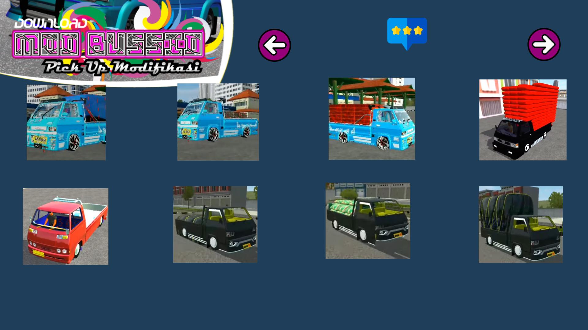 Ayoo tunggu apa lagi segera download mod pick up l300 ceper modifikasi, koleksi semua variannya. Miliki juga aplikasi kami lainnya untuk keperluan download mod bussid truck canter, mod bussid truk oleng, mod jb3+ update, mod bus ceper modifikasi lainnya.