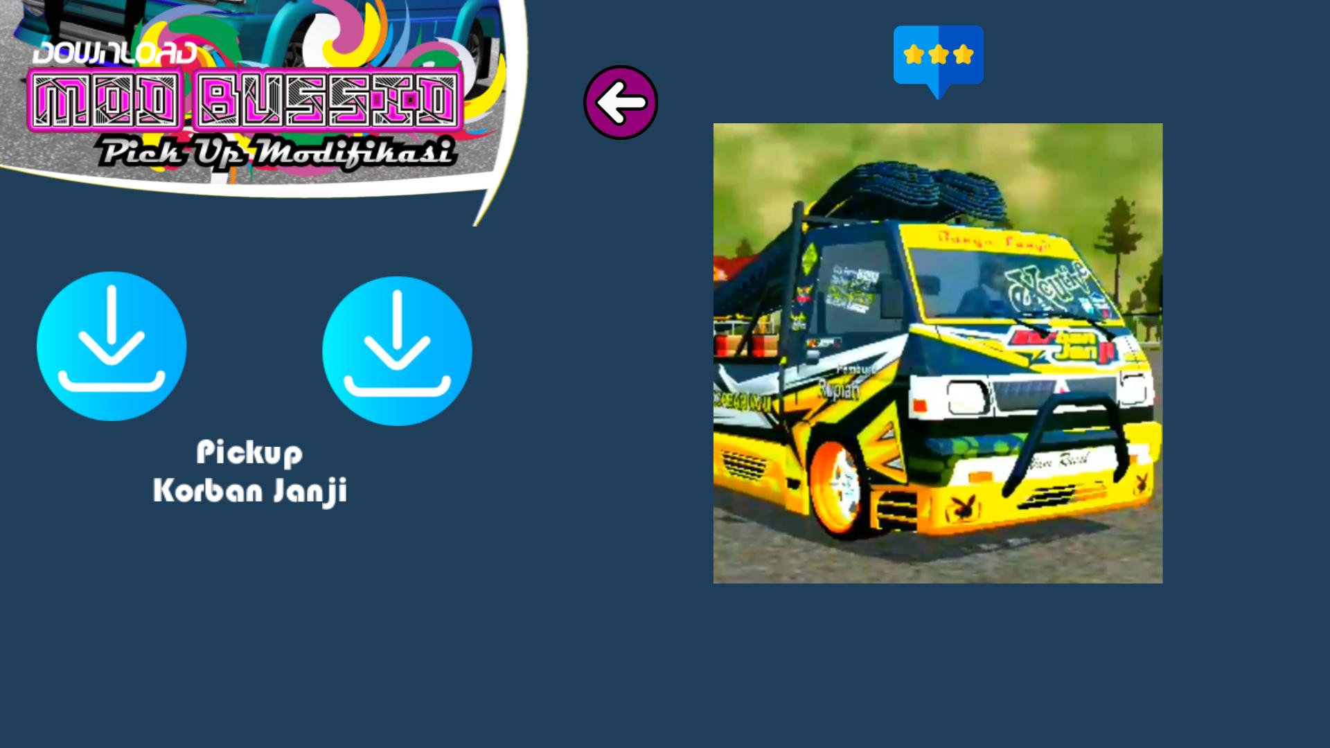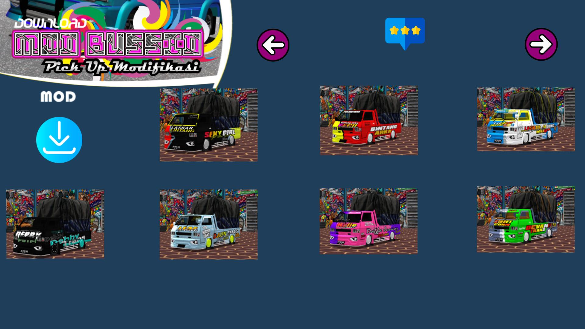 Aplikasi ini memiliki banyak keunggulan, yang paling kami tonjolkan adalah kemudahan Anda untuk men download mod mobil pick up modifikasi ini secara mudah dan sudah didukung dengan link dengan akses tercepat, dalam fitur nya kemi memberikan beberapa pilihan download mod maupun livery. Untuk konten sendiri kami ada mod pickup bussid strobo, mod pickup muat sound system, mod tribal gayor pickup, mod pickup monster, mod pickup traga, mod pickup korban janji, mod l300 rotary, yang merupakan varian terbaru, dan untuk mod pickup yang paling sering dicari kami juga mempunyai pilihan seperti pickup mod cabe, mod colt t120, mod pickup muatan berat, mod pick up muat kayu yang semuanyag free alias gratis.