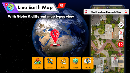 Live earth map for android gives you an option to explore, live satellite view from above the earth, live earth maps, live street view and 3D terrain view of the earth. Live earth map HD and live satellite view gives you a virtual tour around the globe on your mobile screen with an option to listen live FM radio from any part of the world. Live Earth Map is a whole package of earth view live maps, live webcam, live satellite views, live street view and 360 panorama view and real-time virtual tour of globe without travelling anywhere. Earth map live in real-time is the best app for exploring world live through webcam and watching HD photos of famous locations, live street view 360 and 3D global maps, and enjoying live earth view in real-time. Using this app, you not only explore the world but you can also look for NASA space exploration. Live FM radio gives you the access to FM radio stations all over the globe. You can select any station of FM radio and play it live on your mobile. The options provide you with traffic alerts and find maps, driving directions to help commuters plan the optional route to their destination. During the entire journey, driver knows the details of the map route with the GPS Route Finder & driving app about traffic updates and traffic alerts. Live GPS Traffic Navigation will give you the shortest route to your destination. Map directions and AR Navigation map guides you on every turn on the map, gives live traffic route and live street view. Using Global GPS route planner, driving maps, AR navigation and traffic alerts is the best way to find the shortest route. Space exploration feature of NASA data would be fascination especially for space lovers as they could virtually explore different things of the universe. Live Earth Map app helps you to track all your visited locations on maps with respect to your visited time and location.