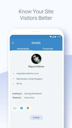 The robust live chat software app is equipped with features like visitor monitoring that can help your operators understand your customers better. The live chat for customer service comes with an intelligent chat engagement feature that allows your operators to reach out to visitors by sending proactive invites and auto greetings from the mobile app.