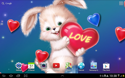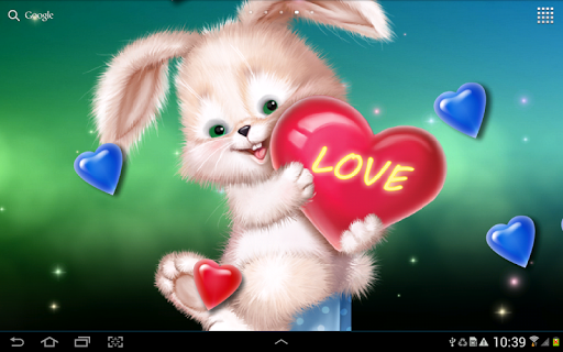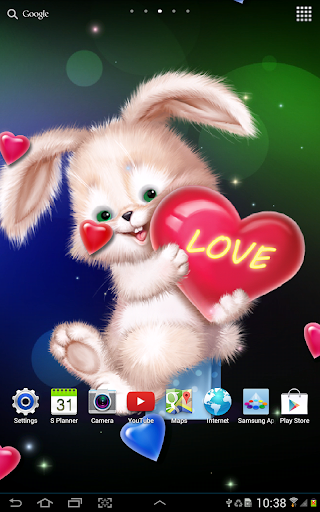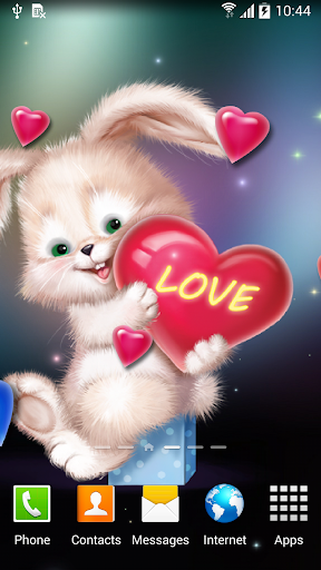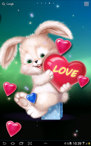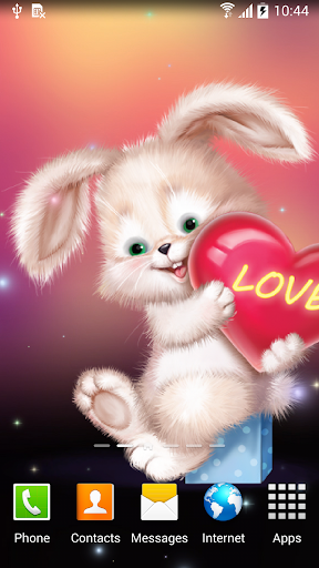 Cute Bunny Live Wallpaper - beautiful free live wallpaper with a pretty cute bunny that keeps heart. With animated flying hearts that respond to touch, set of abstract backgrounds, animated fireflies, lights, and much more.