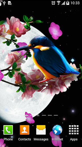 wallpaper with animated bird and falling sakura will be perfect decoration for your Android smartphone or tablet.