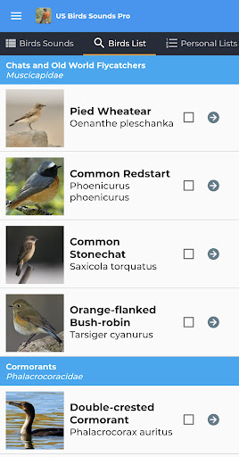 Personal Lists can be created too! Create a list of your favourite birds, or add birds that you've seen on a recent bird watching trip. Birds can be added to your lists from each birds species screens.