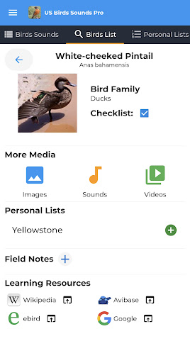 Listen to all the beautiful bird songs offline and create lists and field notes too.