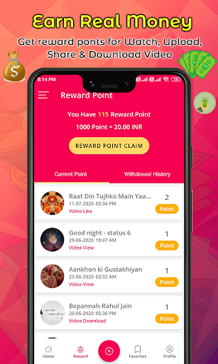 ➽ Get reward points for watching videos , upload, like, comment, share & reffering your friends and get redeemed withdraw money with paypal , paytm or upi.