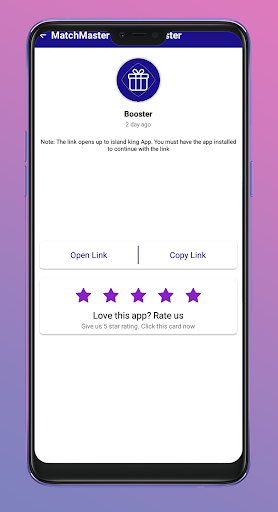 Match Masters Daily Boosters is the best app to offer daily rewards for Match Masters game. We provide immediate updates for rewards offered by Match Masters. This game is unique way of playing puzzle games with friends, it also gives you extra powerups so that you can be engaged to play more game.
