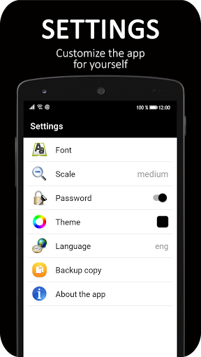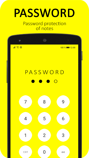 - And of course the main function: notes with password is to protect all your texts from unauthorized persons. The password on the lists is set by you personally and no one except you can know it. It is very convenient to enter a password, since it is made in the form of a pin code.