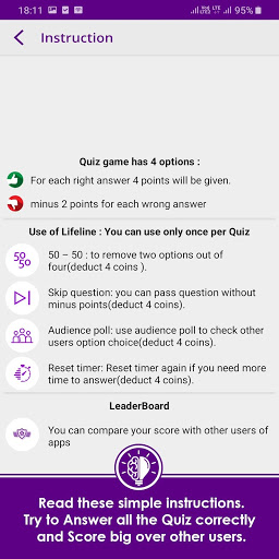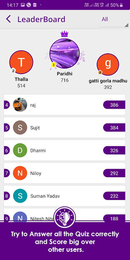 - Try to Answer all the Quiz correctly and Score big over other users.