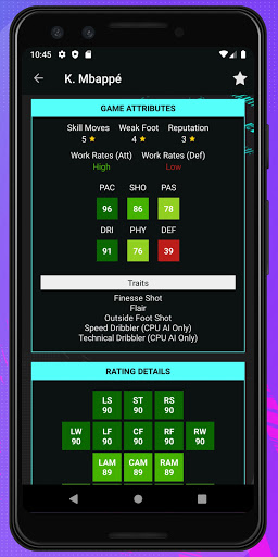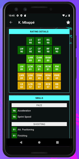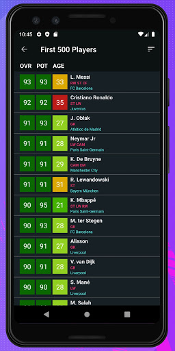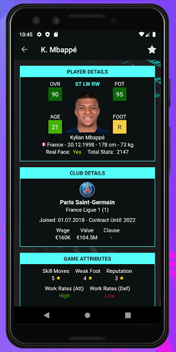 Find players easily by their Overall Rating, Potential, Rating, Age, Real Face, Foot, Market Values, Game Attributes, Positions, Nationality, League, Club, Contract and Skill. Analyze players in detail. Player Potentials 21 is super easy to use. This companion app will be your best guide during the transfer seasons.