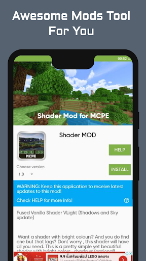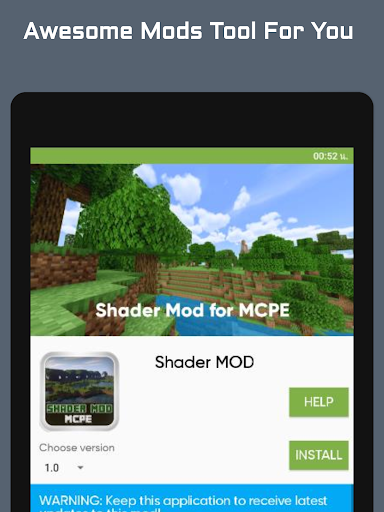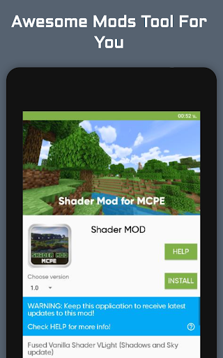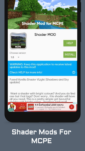 Shader Mod for MCPE is an application that give you the easiest way to install Shader Mod into your Minecraft world.