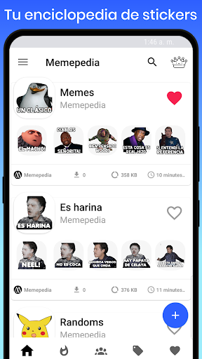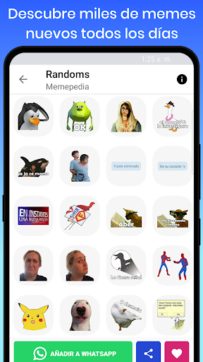 No hace falta que actualices Memepedia, podrás encontrar nuevos stickers constantemente tan solo abriendo la app. Además de los stickers oficiales hechos por nuestro equipo también añadimos los mejores memes hechos por nuestros usuarios para que todos formen parte de la enciclopedia de stickers más grande de la Play Store.