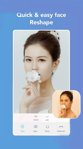 Next Photo Editor Plus can remove unwanted things from the face makes it easy for you to enjoy clear and beautiful skin, and make your face slimmer, reshape your jaw, improve the elegance for nose naturally.