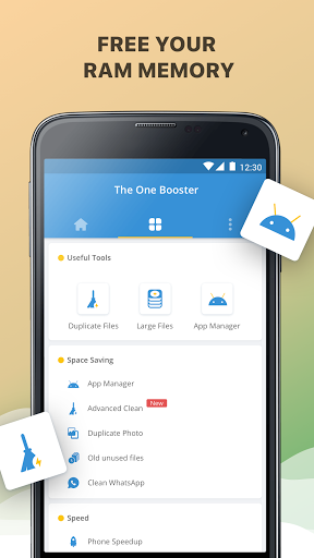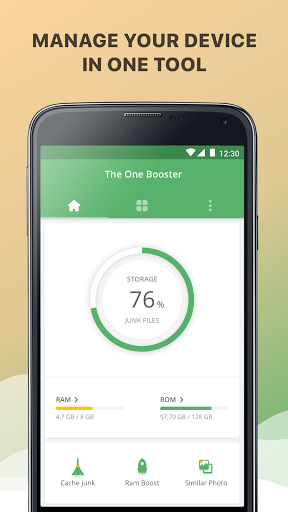 The One Booster is a modern, high performance, storage cleaner that presented to help android device owner avoid problems with: