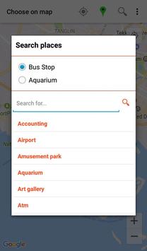* You can search bus stops and other places nearby or any user selected location.