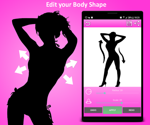 Body Shape Photo Editor You can improve your Body Shape, scale up or down different Body Parts and create Pictures. Make your Body Shape now curvy or resize specific Body Parts.