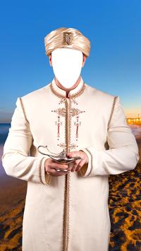 There is no reason to wait any longer but open the latest photo editor and with it, you can imagine yourself in exclusive clothes. Suit your image and resize it so that it fits into the photo frame perfectly. You will get the picture of you in glamorous beige clothes with breathtaking embroidery wearing golden turban and holding magic lamp. You seem perfect it these Arab man suit. Add photo text on image and create unique greetings cards. Do not hesitate but montage your images and when you are done store your work and then make top gallery which you can set as photo widget. Then you will have instant access to all of your photo montages which you can set as wallpaper. Download free the popular ♥Arab Man Photo Montage♥ and enjoy while you change your apparel.