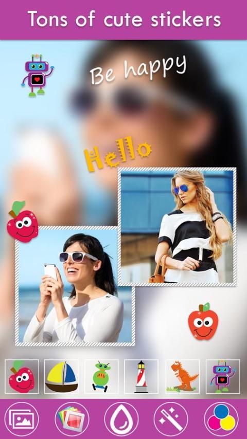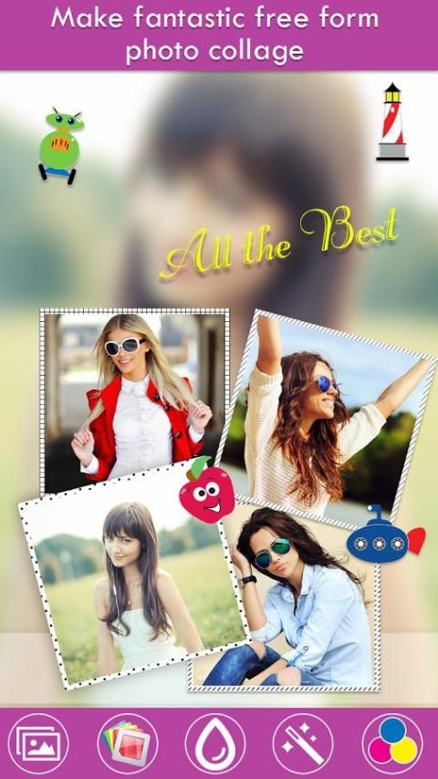 Make endless number of fantastic free form photo collage (no fixed frames) with blur background with photo editor effects, cute stickers & personal text messages.