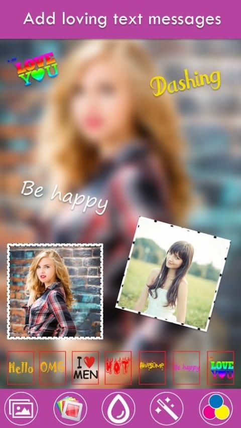 Apply multiple effects & overlays on background to get even more incredible free collage. Collect your family's, friend's photos and make photo collage with blur background, write fantastic loving lines on this collage and save it on your SD card.