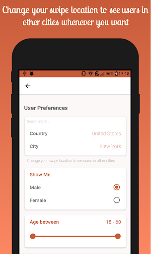 •Change your swipe location to see users in other cities whenever you want.