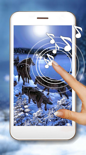 They include a sound effect - Sounds are played when you touch on the center of the screen. Workspace animations Saturation is adjusted in the menu settings for your application. Application Winter Wolves Live Wallpaper tested and permitted its use On most models quadrupeds manufacturers.