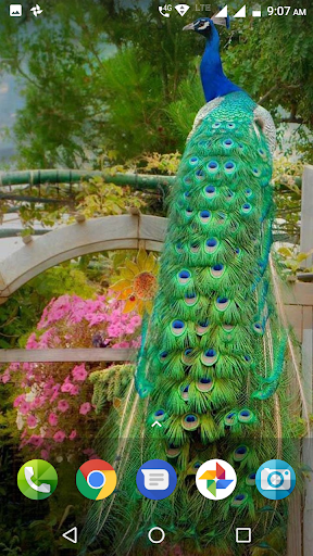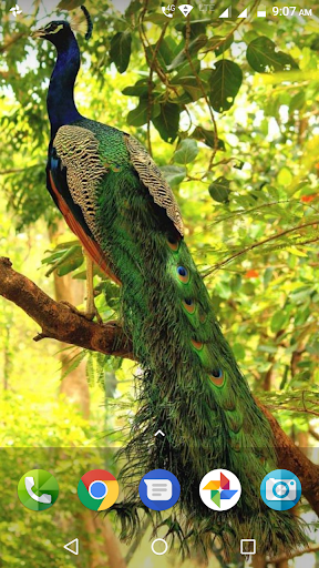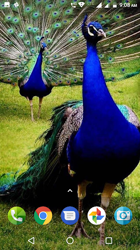 body feathers are mostly metallic blue-green. The green peacock, with a train much like that of the blue, has green and bronze body feathers. Hens of this species are green and brown and are almost as big as the male but lack the train and the head ornament. if you love Peacock be sure to check out the wide collection of Peacock bird in Peacock Wallpaper application & set your favorite one as your Android wallpaper & background. Please check all screenshots of Peacock Wallpaper application given below to know how your device will look like. All the images of Peacock Wallpaper