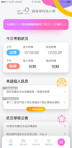 配合 myIT-School 內聯網及智能訊息發佈中心,校園資訊便能第一時間傳送到家長的智能手機之中,令家長更實時地了解子女的校園生活。 功能包括: - 家課冊、學校公告、通告及個人訊息顯示 - 主動訊息通知,配合雲端處理,實時 Push Notification 服務 - 可閱讀多名子女的訊息 - 支援文字、圖片顯示和附件顯示