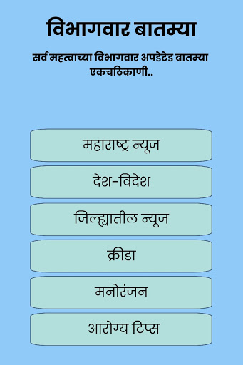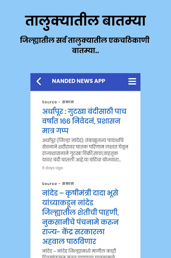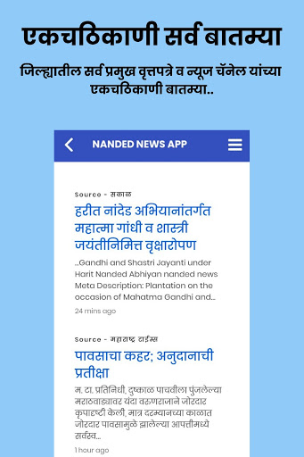 This app to Get Nanded today Breaking News on your Smartphone in Marathi language from trusted news sources. Our News app has ‘News links’ from many top newspapers sites and channels. In this app we have provided only news links. We do not re-edit or re-publish any of news information.