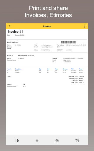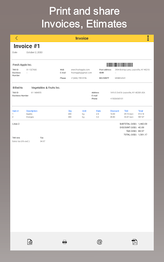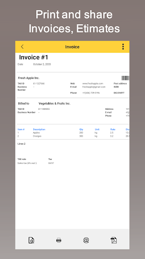 - print and share Invoices, Estimates, Order confirmations,