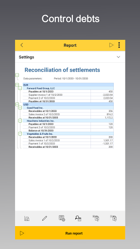- getting comprehensive reports, flexible configuration of reports, various filters, sorting, saving settings and options for reports, share PDF (EXCEL) reports,