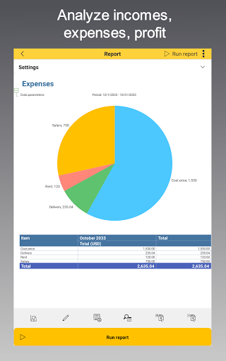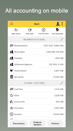 ★ finance management: cash flow, money, multi-currency, incomes and expenses control, profit, loss and financial result;