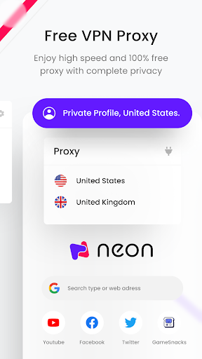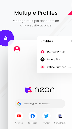 By using NEON browser you can handle multiple accounts on any website at once. You can surf GEO-restricted websites with our built-in free instant proxy feature. Surf internet without ads. Accelerate download speed with multi-thread downloader. Checkout all features of NEON browser below… 😉