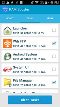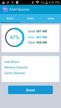 RAM Booster will make your phone or tablet work faster, Automatically optimize your RAM & Cache memory to improve the performance and save battery.